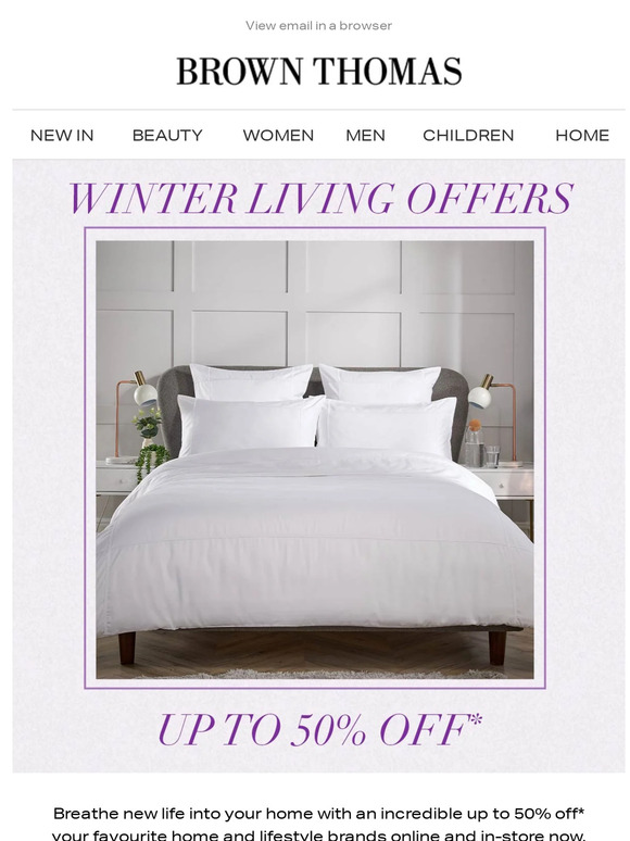 | | Brown Thomas Up to 50% off* homeware online and in-store now! | | | | |
