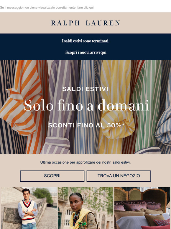 | | Ralph Lauren Gli sconti fino al 50% terminano tra meno di 48 ore | | | | |