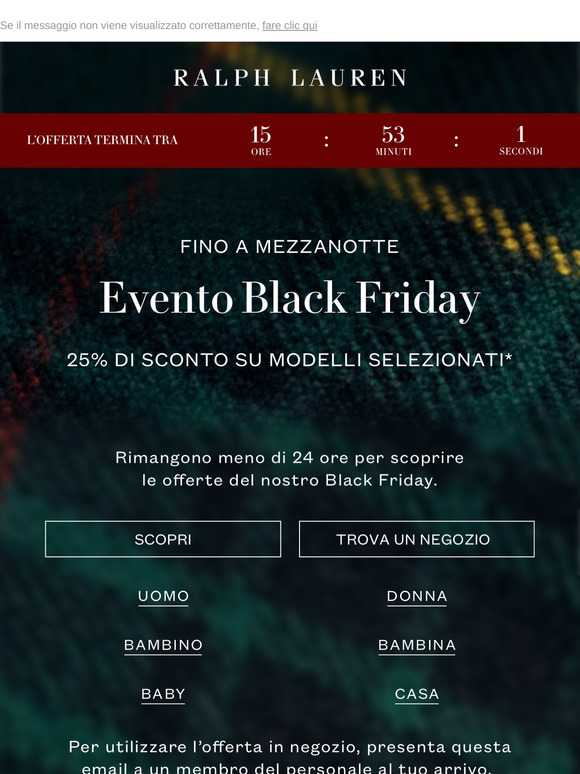 | | Ralph Lauren Evento Black Friday | 25% di sconto fino a mezzanotte | | | | |